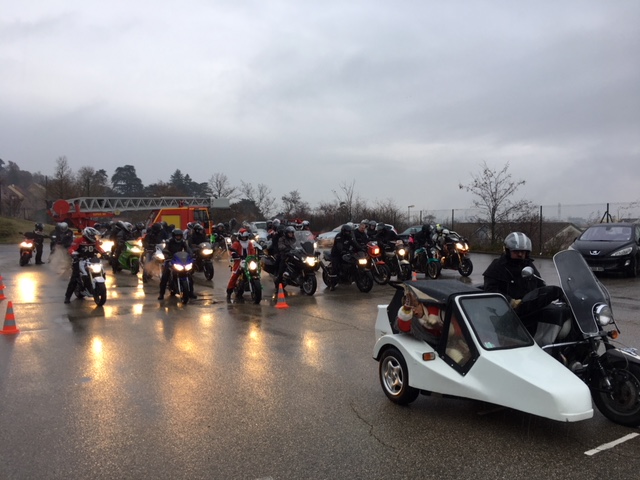 De la caserne des pompiers au marché dominical en passant des lotissements et la maison de retraite une quarantaine de motards des diffèrent clubs de la région avaient répondu à l'invitation du MCP LES ESCARGOTS