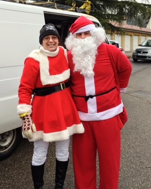 Pluie, neige, froid...Rien ne nous a empêchés de promener le père et la mère Noël dans l'agglomération pour la distribution de papillotes et de mandarines.