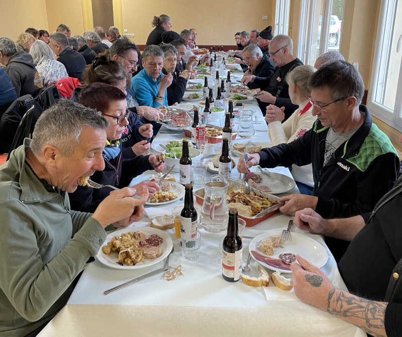 Le rendez-vous était fixé samedi 28 janvier à midi au restaurant l'HELVETIA à Serrières pour ceux qui désiraient profiter d'une fabuleuse gardianne de taureau maison.