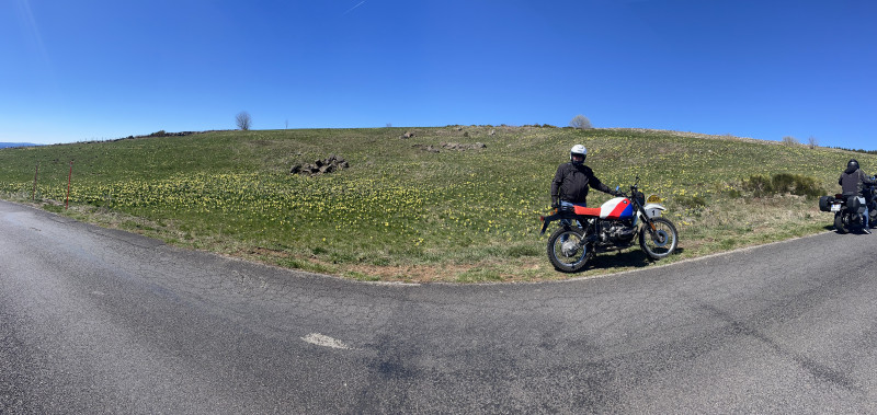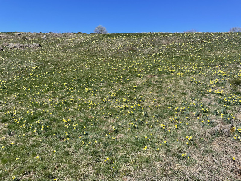 En avril, ne te découvre pas d'un fil. Ok. Mais quand les températures en plaine sont de 28° C, nous allons chercher le frais sur les hauteurs. Nous sommes donc partis du coté du Mezenc pour une belle balade de 250 kms entre les lacs de St-Frons, d'Isarles et de Devesset avec un repas au Béage à l'hotel Beauséjour. (très bonne table, Merci Norbert) et ceuillette de jonquilles.